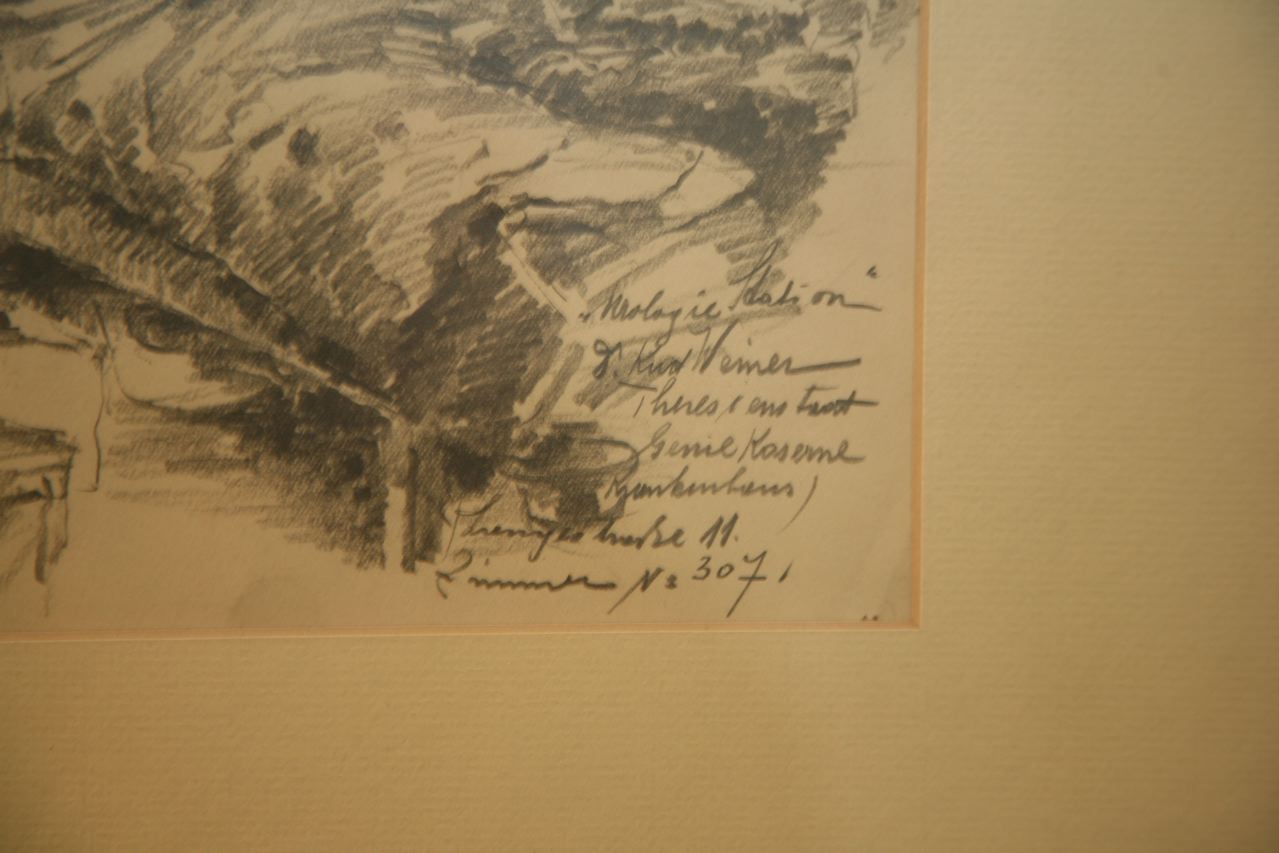 RG-04.02.16, Moritz Mueller, a hospital room, corner fragment, signed and dated | Los Angeles Museum of the Holocaust