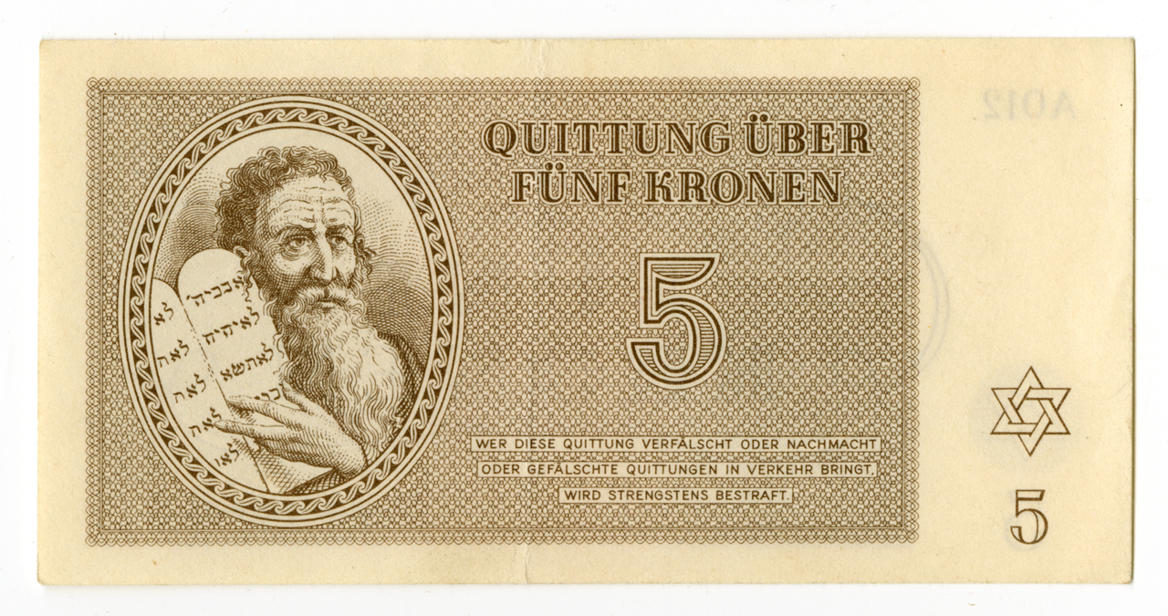 RG-06.04.06, Eva Beckman, Theresienstadt,Funf Kronen (Five Kronen). ghetto receipts | Los Angeles Museum of the Holocaust