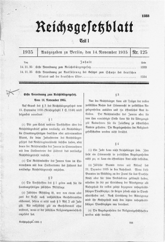 Sub-Collection 2: RG-05.02, National Socialism, official Documents, 1920s -- 1945  Document/Artifact of Item-Level 2: RG-05.02.02, First page of addendum to Reich Citizenship Law of September 1935, 1935