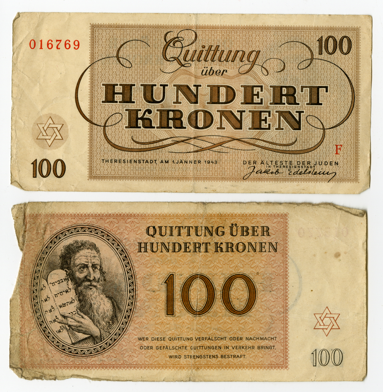 RG-06.04.08, Eva Beckman, Theresienstadt,Hundret Kronen (One hundred Kronen), ghetto receipts | Los Angeles Museum of the Holocaust